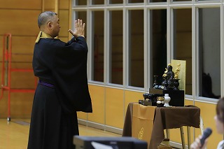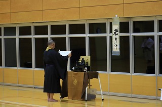 少林寺拳法達磨祭合同演武会の開式では、日進南道院の宮地道院長が導師を務められ、厳かに執り行われました。