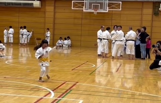 別コートで再度演武披露し再採点を行い、別角度での修練ポイントを保護者様を交えて伝えるという