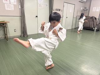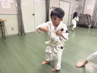 「春日井市の少林寺拳法道場で、5歳のみなと君が元気に稽古に励んでいます。